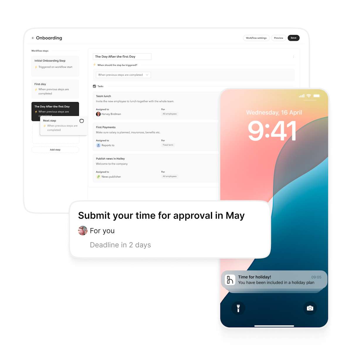 HR, manager and employees spend too much valuable time manually completing repetitive tasks related to HR processes. With customizable workflows triggered on specific events, Hailey automates the distribution and follow-up of each step in the process. We call this HR on autopilot!