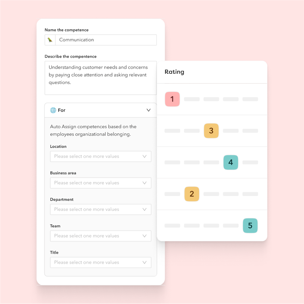 Automatically assign competences to specific roles and organisational groups through scoping or add them manually. Choose from all competences for maximum flexibility.