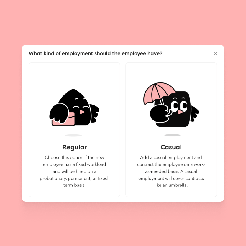 Replace admin with automation. Quick workflows guide you through various employment processes, whether it’s a new hire, rehire, or employment transition. Customise and add your own templates to make the work easier for you, hiring managers, and employees alike.